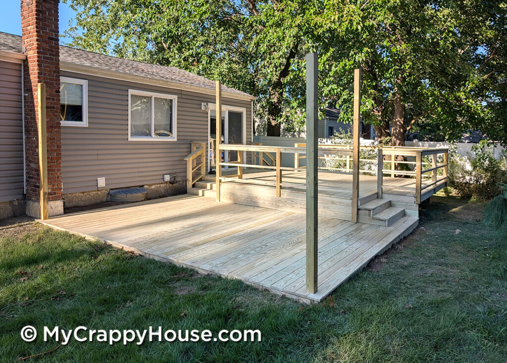 Before the final reveal, let’s take one more look at our deckless house. We went from this: